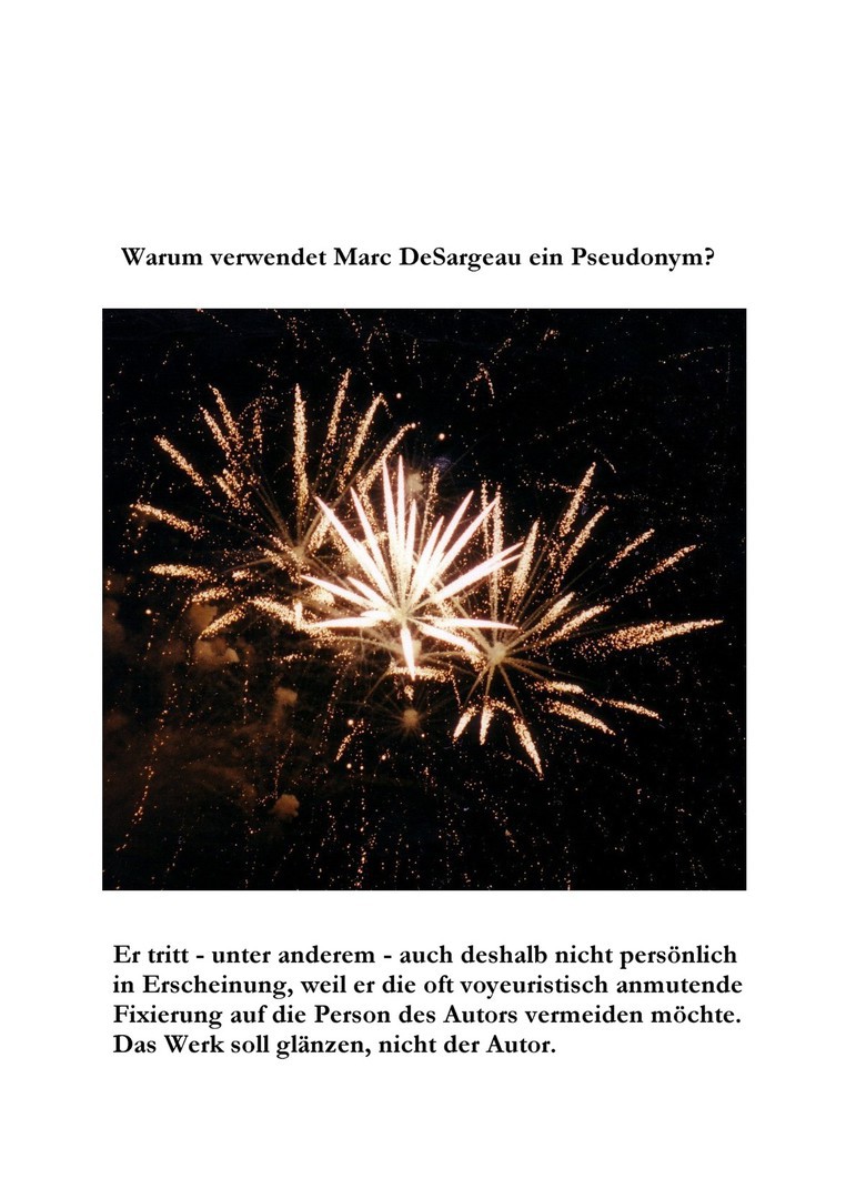 Die schriftstellerischen Arbeiten sind eine Nebenlinie seiner Werke. Hauptsächlich motiviert Marc DeSargeau wohl die